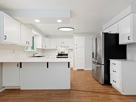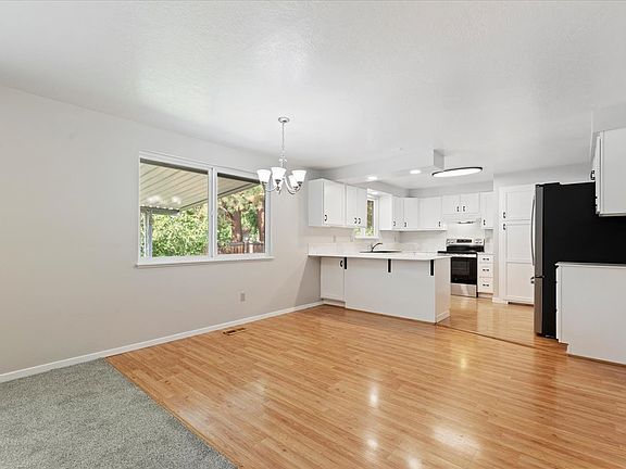 Beautifully updated SE Boise single-level, 3 bed, 2 bath home with two living areas, new carpet, and fresh paint. Enjoy new recessed lighting, solid-surface kitchen counters, tile backsplash, composite sink, updated fixtures, and new cabinet fronts. Bathrooms feature luxury vinyl flooring, new counters, vanities, and fixtures. Excellent SE Boise location near everything.