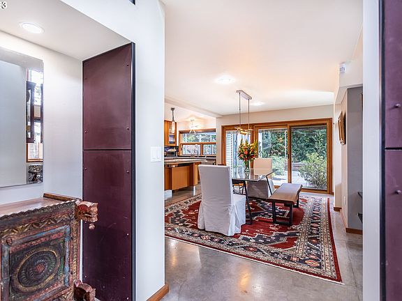 Welcome to this sun-filled architectural masterpiece on the coveted SE Hills of Eugene. Pella windows and doors. The concrete radiant heated floors keep it cozy in the winter and cool in the summer. Interior floors, windows, and door trim are all custom-built out of reclaimed wood from Lewis and Clark College Stadium Bleachers. Multiple private covered decks provide great outdoor living and lots of different spaces to relax. The landscape which was designed by Mosaic Gardens is fully fenced for privacy and deer resistance. Bonus Loft and plenty of attic storage. Equipped with 2 EV chargers and even a custom enclosure for the garbage and recycling. Every space is well thought out for comfort, privacy, and efficiency.