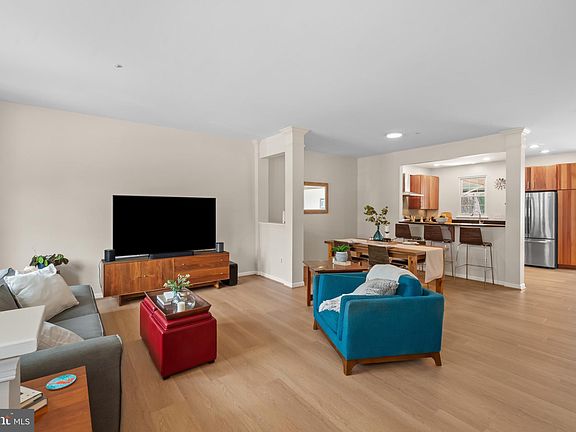 Picture perfect and ready for new owners! located on a quiet court with lots of guest parking available. The open contemporary floor plan is ideal for entertaining. Designer kitchen with custom Eucalyptus Cabinetry, Quartz counters,Stainless Appliances and gleaming Glass Tile backsplash. The Sunroom Addition opens to the deck and private open space views. New vinyl plank flooring and new vinyl plank flooring and nine ft ceilings complete the main level. The upper level offers an oversized owners suite with Vaulted Ceiling and includes a spa like remodeled bath with both tub and shower and walk-in closet. Two additional bedrooms and bath complete the upper level.The lower level is perfect for relaxing in front of the gas fireplace . There's room for a play area, in-home office or gym . A slider leads to a paved patio and fully fenced rear yard. Recent improvements include : Whole House painted , new carpeting bedroom level. New Vinyl plank flooring main level. New roof 2024,Lenox heating and air 2017, New water heater 2022, Brand New LG Washer& Dryer,Fade Resistant Composite Deck 2021 ,Windows have been replaced.