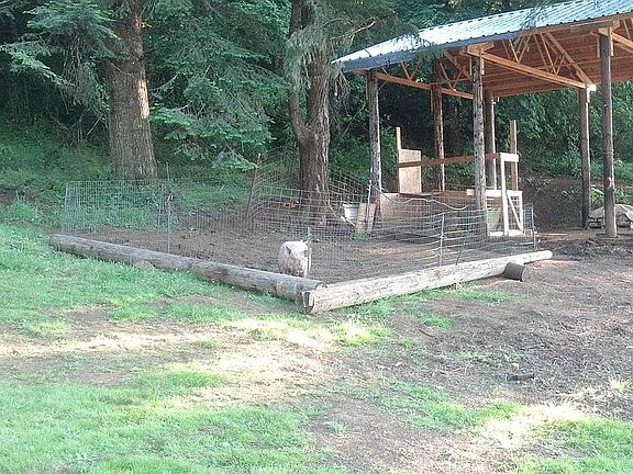 This stick built home rests on the north face of a timbered hillside gently levelling out at the house. The park like setting features a large fire pit and a 24 foot long wood beam constructed picnic table. There is a heated 30' x 36' fully powered shop and a 30' x 30' ag building with pens for live stock.