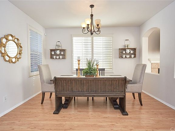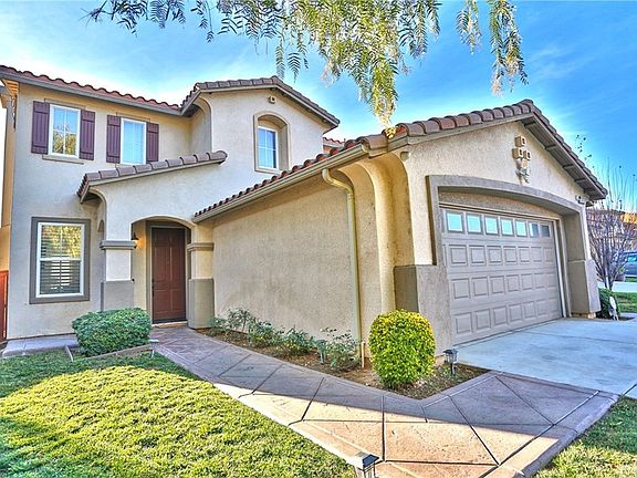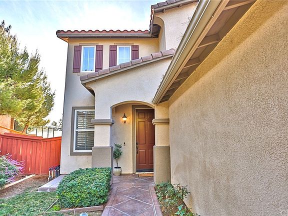 Beautiful two-story home located on a quiet cul-de-sac in the prestigious private and gated community of Tournament Hills. Your new home features four bedrooms and three bathrooms with a hard to find one bedroom downstairs and one full bath. Upon entering, you will be delighted with the beautiful open floorpan, brightly lit with lots of windows and custom windows shutters. The family room includes a cozy fire place perfect for chilly nights and custom built in shelving. The open floor plan flows into kitchen perfect for entertaining. The kitchen features lots of cabinetry, kitchen island, granite counter tops and walk-in pantry. As you make your way upstairs, the large master suite is filled with natural lighting. The large master bathroom features a sunken tub, separate walk in shower and a vanity with dual sinks. The laundry room is conveniently located on the second floor and features ample storage. All bedrooms are generous in size. Step out to a spacious fenced in backyard. What a great home for BBQ's and parties or to entertain friends to gather and enjoy. The top-rated Tournament Hills Elementary School is five minutes away. The community is patrolled 24 hours a day and security gates, you will love the peace and quiet of the area. Cul-de-sac location, close to Schools, transportation, shopping, parks and easy access to 10 freeway Come and see this great opportunity!