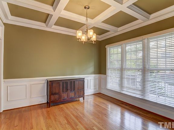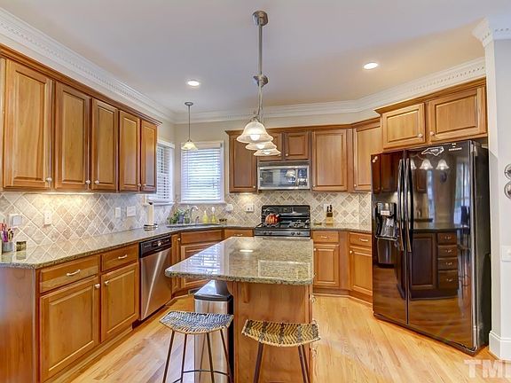 Fantastic traditional style home in desirable NW Raleigh location! Hardwoods throughout 1st floor. Extensive millwork. Formal dining includes coffered ceiling. Spacious family room w/ gas log fp. Bright & open eat-in kitchen offers granite tops, center island, s/s appliances (gas range) & walk in pantry. Large master suite includes whirlpool tub w/ separate oversized tile shower & WIC. Huge 3rd floor bonus with extra storage. Deep 2 car garage with workbench. Screen porch. Private, fenced backyard.