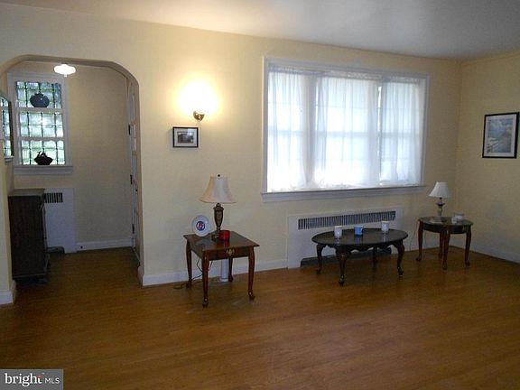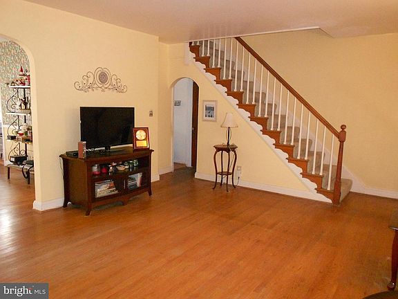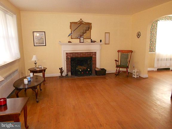 REDUCED 15K - Solid 3BR/2BA brick & stone semi-detached house is ready for new owner. Inviting front porch and arched doorway greet you as you enter the foyer. Large & bright living room with brick wood-burning fireplace and mantle. Harwood floors throughout - no carpet! Good-sized dining room w/french doors to balcony. Window AC keeps first floor cool & stays with property. Enter the retro kitchen with lots of white cabinets & new gas stove. Kitchen cart adds extra counter & storage space. Access to back yard & downstairs. Upstairs features 3 spacious bedrooms. Master BR has en-suite bath. Lower level boasts family room with propane gas fireplace. Bonus room under porch for storage. Utility room houses boiler, double laundry tub, washer, dryer, extra frig, flush and access to back yard. Another bonus is the garage with newer garage door. Parking in back for 2 cars too! Ready for move in or rehab as desired - sold AS-IS, no FHA or VA.