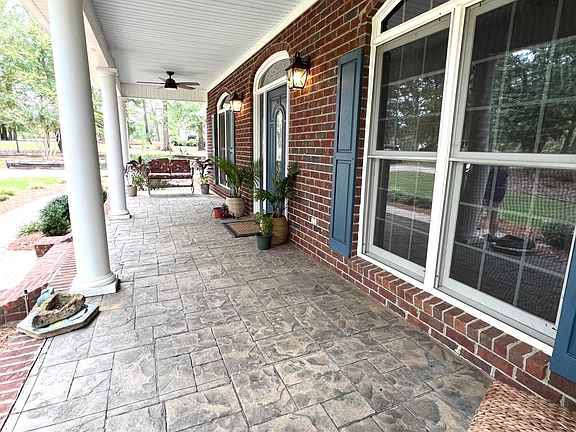 Recently Painted and Beautiful Curb Appeal! This must see home in the heart of Evans is nestled on almost 2 peaceful and mostly wooded acres, and landscaped with azaleas, gardenias, roses, daylilies, and the like. This solid brick home has plenty of room for extra parking when entertaining- between the 3 car garage, long driveway, and large gravel parking area to the left of the driveway. The deep 34'x8' stamped concrete covered porch is great for welcoming guests and relaxing on cool fall evenings. As you enter the home, you are greeted by timeless toned hardwood floors extending throughout most of the downstairs, and an open foyer. Immediately to your right, you will find a large office suite with beautiful solid wood built-in bookshelves and a built in desk, and across the foyer from the office, you will find a well lit open dining area with a column entryway, which leads into the kitchen. The kitchen boasts solid wood cabinets with plenty of deep drawer storage, a walk-in pantry, granite counters, a kitchen island, breakfast bar, pot filler kitchen faucet over the stove, and custom tile backsplash. The Bosch dishwasher, built in electric stove, and microwave are included with the home. The breakfast bar overlooks the two story living room, which features a stack stone gas fireplace and solid wood mantle- the mantle even has an electrical outlet for extra lighting or to hide TV wires. Off of the breakfast room towards the garage, you will find a half bathroom, several closets, and a large laundry room that features a folding counter, ample wood cabinets, and a utility sink. The primary bedroom is downstairs, and has its own access to the 14'x12' screened in porch, which can also be accessed from the deck. The primary bathroom features a walk-in tiled shower, garden tub, and double vanity Corian countertops over solid wood cabinetry. Every bedroom in this home offers a large walk-in closet, and all but one bedroom has an en-suite bathroom. In addition to the large walk-in upstairs closets, you will also find built-in storage seats under each bedroom dormer, several attic access doors throughout the upstairs, and large rooms. There is also a cozy bonus room or sitting room that leads into a 5th bedroom. The 5th bedroom was recently painted. Owner has also just updated some of the lighting in the home! Knob Hill HOA includes access to the clubhouse, the fishing lake, playground, and the pool which is home to the Knob Hill Barracudas Swim Team. Fantastic Location- less than 2 miles from Publix and Starbucks, and only 1 mile to Parkway Elementary School. Come see why the owners of this home have loved it so much.