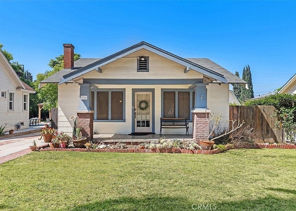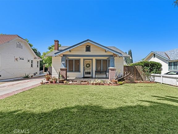 Charming home located in the historical "Wood Streets" neighborhood. Experience vintage charm coupled with modern conveniences. Hardwood floors, living room with lots of windows providing natural light and a fireplace for cozy evenings at home. Separate dining area. Kitchen has been remodeled with Corian counters, new cabinets, new sink, and stainless stove. Inside laundry room. Two bedrooms on main floor. Large private back yard. New HVAC system. Whole house fan. Carriage house. Close to downtown Riverside, Mission Inn, restaurants and shopping.