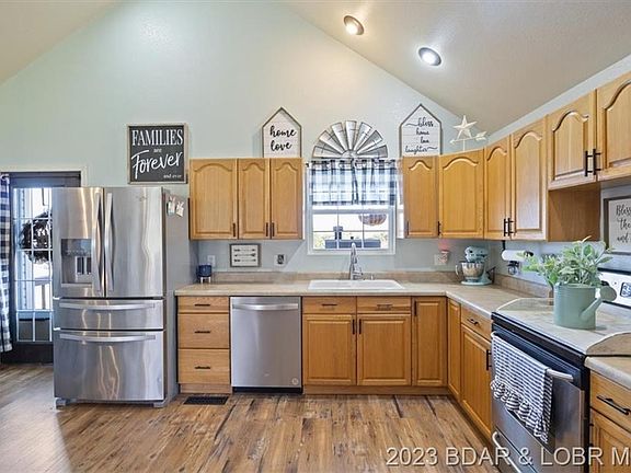 Beautiful Ranch Style Home just a few minutes from Camdenton schools and the square but outside of town with 1.2 Acres! Featuring a high vaulted ceiling, new LVP flooring throughout, updated wall paint colors, new lighting fixtures and fans, and newer roof, this home is sure to check lots of boxes! Tons of cabinet and counter space in the kitchen and what an incredible outdoor entertaining area! Spacious covered deck, FLAT yard, and above ground pool. Room for kids and pets to run around, plant a garden, build a shop, etc! A great home to unwind and relax with little road traffic and so much yard! No steps into the home and just a couple off the back deck. Very conveniently located and would be great starter home, retirement home, and a fantastic long-term rental! No HOA. 2023-04-02