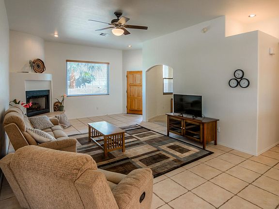 3bedroom plus den with great room floor plan. Two cozy fireplaces and 10' ceilings. Kitchen offers maple cabinets, granite counters, RO system, stainless appliances, french door refrigerator. Brand new Anderson windows. Master bathroom completely updated with brick set tile, slow-close dovetail cabinets, E-stone counters, remodeled shower. Nest thermostat, washer/dryer, and water softener included. Three citrus trees in the open back yard. Gas stub to BBQ. No homes directly behind.