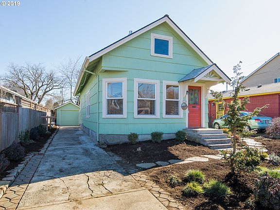 Adorable Victorian Farmhouse in hot Foster/Powell! Light and bright, this home has big sunny windows, fresh paint, and beautiful hardwood floors. Nice open floor plan, new gas fireplace, proper dining room, handsome kitchen cabinets, a breakfast nook, and all around good vibes! Has detached garage with electric, new roof, fully fenced yard, landscaping and garden. Bike score 97! It doesn't get any cuter. [Home Energy Score = 3. HES Report at https://rpt.greenbuildingregistry.com/hes/OR10040536]