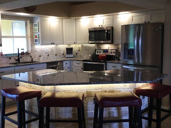 Bring your boat and kayaks to triple lot site west of Burnt Store and south of Embers. Newly renovated kitchen includes wood cabinets, granite countertops, travertine and copper backsplash, oversized island, and custom lighting. Master suite has his-and-hers walk-in closets and a corner garden tub. Unique yard designed retreat style with paver-patio, privacy hedge, fire pit, mature exotic trees including mangoes, bananas, coconuts, and tropical bamboo. Plenty of space for your boat and a pool! This is a highly desirable neighborhood next to burnt store boat ramp and walking distance to the Seven Islands and Sirena Vista Park..City water and Sewer scheduled to be hooked up before the end of the year. We absolutely love this house, yard and the neighbors. If you are interested in taking a tour, stopping by or have any questions, feel free to call.