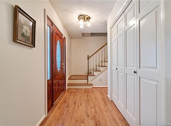 So much space! This 2900 HSF home offers three full levels of living space nestled into 1.72 acres of wooded land backing up to Falling Creek. The main level offers a large covered front porch, foyer with large coat closet and adjoining formal living room. The adjacent formal dining room offers wainscoting and opens onto the kitchen with tons of cabinetry, breakfast area, and adjacent den with built-ins flanking a wood-burning fireplace. You'll also find a relaxing sunroom, double garage, and half bath on the main level. Upstairs, you'll find three large bedrooms, including a master suite with his/hers closets and private bathroom. The 4th bedroom upstairs has been converted to a convenient laundry area, but can be converted back. The full basement offers a large rec room with 2nd laundry room 4th bedroom, and 3rd full bath. The lower level also has a workshop with single garage door concrete patio, & fenced backyard area. All new hardwoods on main level, all new paint. Community pool.