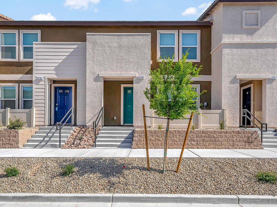 Welcome to this stunning 3 bedroom, 2.5 bath home nestled near the vibrant Inspirada community. Step inside to discover the elegance of wood floors that grace the main floor, leading you through an open floor plan featuring a convenient half bath. The kitchen is a chef's dream, boasting quartz countertops, white custom cabinets, stainless steel appliances, and a spacious walk-in pantry. Retreat to the expansive master bedroom with its own walk-in closet and a master bath offering a luxurious walk-in shower and quartz countertops. The additional full bathroom includes a bathtub for added relaxation. All bedrooms in this home offer plush carpeting and ample space, ensuring comfort and style throughout. Don't miss the opportunity to make this your new home sweet home!