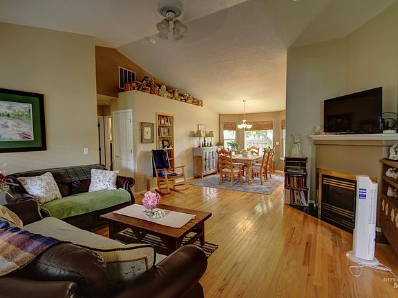 You will love this home... perfect for your first home or for downsizing. This is a single level beauty with large rooms and extra large garage! You'll enjoy hardwood floors, the cozy fireplace and split bedroom arrangement. Many updates have been made in the last few years... Roof, HVAC, Kitchen, Bathroom, Exterior Paint and more. Kitchen and dining room open to covered patio and big back yard with mature trees. The neighborhood has a lot of common area green space throughout. What a great location - close to so many stores and restaurants (could probably walk) and the Village at Meridian is nearby too. Easy access out of the subdivision with traffic lights at Records/Fairview or Pine/Eagle Rd. The freeway is not far. Come by and take a peek, you will want to live here!