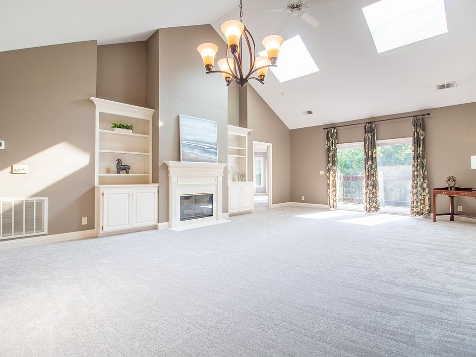 Prepare to be wowed by this incredibly beautiful & spacious second floor condo with new carpet throughout, neutral paint, tall ceilings & lots of natural light. The extra large great room has vaulted ceilings with skylights, built-in bookshelves, fireplace & sliding glass doors that lead to private balcony. In the kitchen there is ample cabinetry & counterspace, along with pantry, desk area & breakfast bar that overlooks the hearth room with more built-in bookshelves & another fireplace. The primary suite features tray ceiling, large windows, walk in closet plus a linen closet & attached bath w/ whirlpool tub, stand up shower & dual vanities. There are 2 secondary bedrooms (one with a walk in closet) and another full bath as well. The attached 2 car garage offers additional storage space.