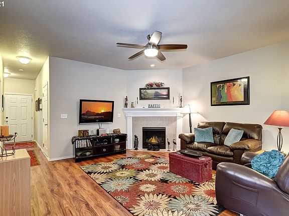 Warm, welcoming end unit townhome in the Oaks at Springbrook neighborhood in Newberg. The generously sized owner's suite overlooks the fenced, private patio and backyard. This home has been freshened up with new carpeting and newer laminate flooring. The open living room/kitchen layout, gas fireplace, and kitchen island are great for entertaining. Guaranteed homeowner parking with attached single car garage and private driveway. Reasonable HOA fees, including exterior maintenance.