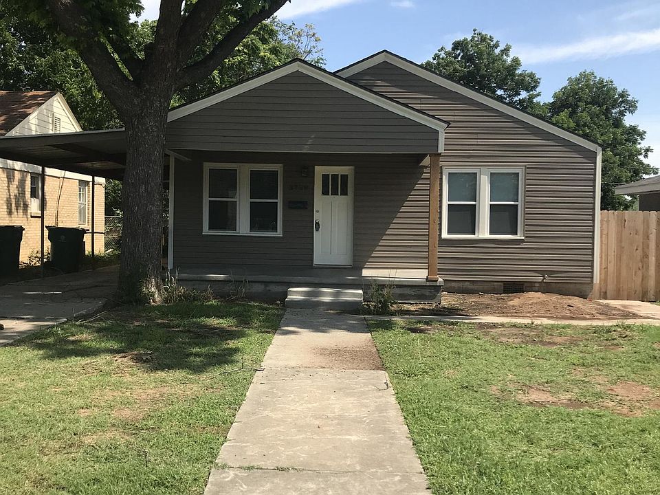 Completely remoldeled! This home will go fast. Relax on the large front porch with plenty of shade from the over hang and large shade tree. Beautiful hardwood floors, new kitchen w/new cabinets, microwave above stove, stainless steel fridge, tons of storage and counter top space. Large separate laundry room w/hook-ups. Small room for office or storage. Nice size bedrooms with amazingly large closets! Beautiful bathroom, all new vanity, mirror and nice deep tub. Fenced in back yard with awning for shade and carport to keep your car(s) covered. Central heat/air. No credit check, but we conduct criminal, eviction court, employment, and rental history checks. No Section 8. Non-smoking home. $25 application fee per person. You mush make at lease $2,800/month to qualify verifiable by tax returns and pay stubs. Immediate occupancy preferred. Deposit of $950 my be split over 2 months. Pet fee separate. Please leave a detailed voicemail about your family and pets for a callback within 12 hours. Thanks for looking at our properties. 15 month lease