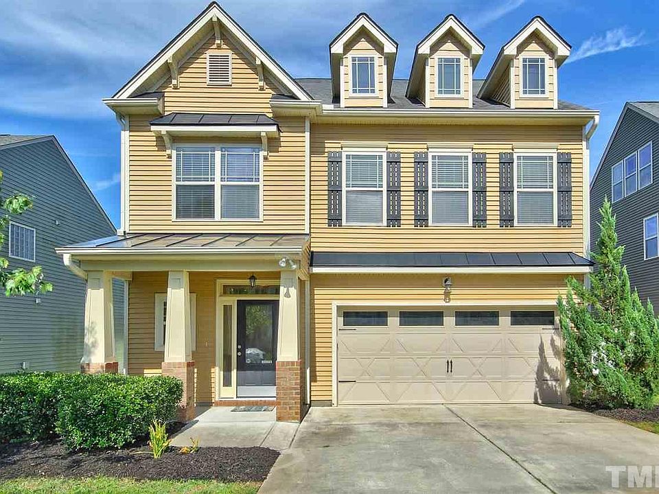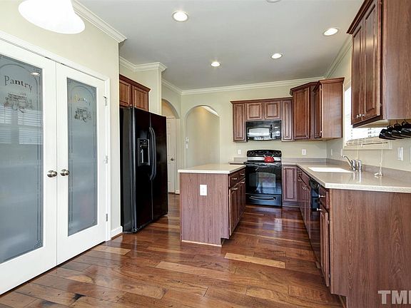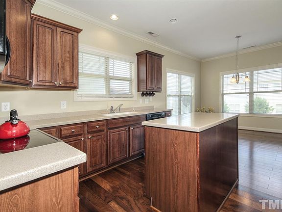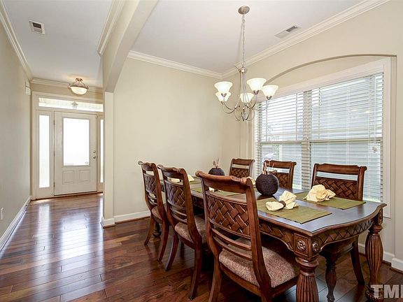 3 story home w/4 bedrooms, 3.5 baths + bonus room on 3rd floor w/full bathroom. Large family room w/corner fireplace. Upgraded hardwoods in foyer, dining room, kitchen, breakfast & family room, ceramic tile in powder room. Solid surface counter tops in kitchen w/crown molding and kitchen island. 2 playgrounds located in the community within walking distance. Convenient location near I-540. 2 miles to Horseshoe Farm Park & connects to Neuse River Trail for hiking, biking & recreation. Pets neg. w/pet fee.