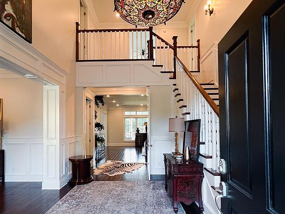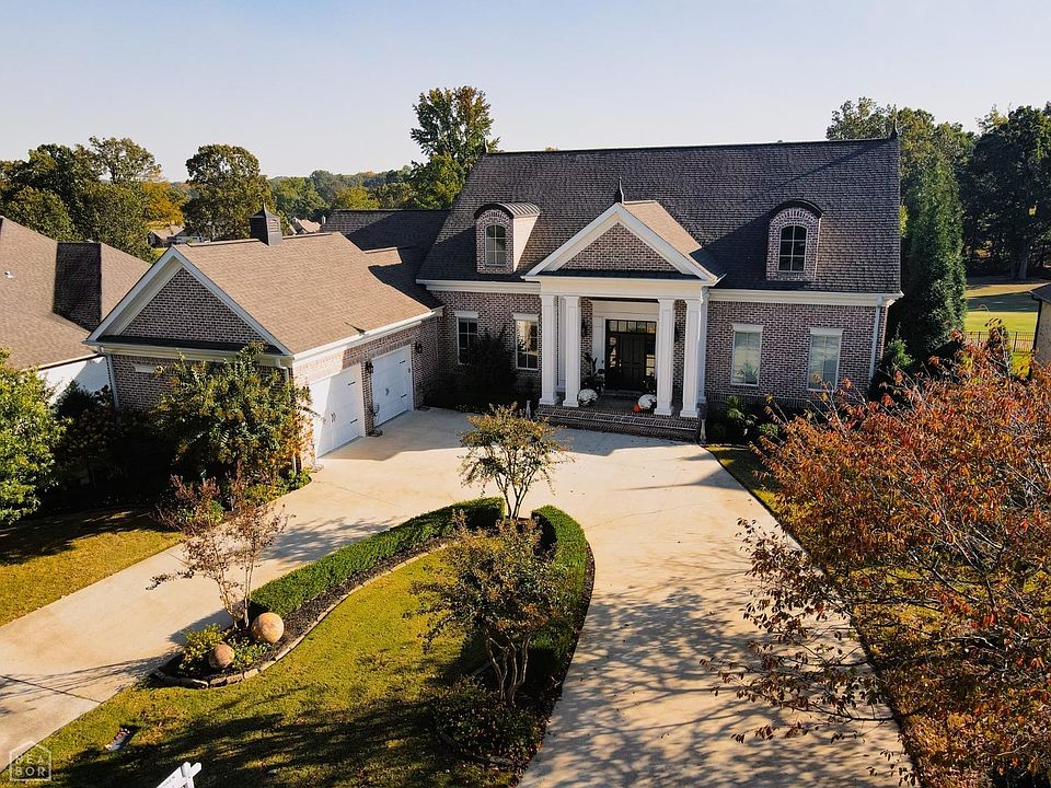 "Frasier Hall" is a custom built, one owner home located in the exclusive Golf Course Community of Ridgepoint. Award winning, Southern Living Magazine Architect Mitchell Ginn of Georgia was commissioned to create a meticulously detailed Greek Revival Cottage overlooking the 6th fairway. This home boast 7,244 square feet and has 7 bedrooms, 7 1/2 bath, 3 living areas, formal dining room, Butler's Pantry, 2 full kitchens and 2 fireplaces. You enter this newly painted home in a central foyer that has a beautiful staircase and 20 foot ceilings. The main floor has 10 foot ceilings, hardwood flooring, an extensive crown molding package, 8 foot solid core interior doors, double paned, gas filled energy efficient windows and spray foam super insulated walls and ceilings. The large walkout basement has 9 foot finished ceilings, a living room with fireplace, a full kitchen, a laundry room, two bedrooms with two bathrooms and two mulit-purpose rooms that could be a theater and workout rooms. An oversized, heated and cooled Golf Cart/Shop could house 2 golf carts and an ATV. Evenings can be enjoyed overlooking the golf course on a covered main floor porch with slate flooring or a downstairs covered grilling porch. Listen to music with the 8 Yamaha speakers outdoors and 5 built in speakers throughout the main common rooms indoors. Over 64,000 brick were used to have a completely maintenance free exterior. Also note the maintenance free crown molding surrounding the perimeter of the home that never needs painting. Sprinkler system and Home Security System are also included. 10,000 Sales Bonus to be paid to buyers agent with acceptable offer by March 3, 2023