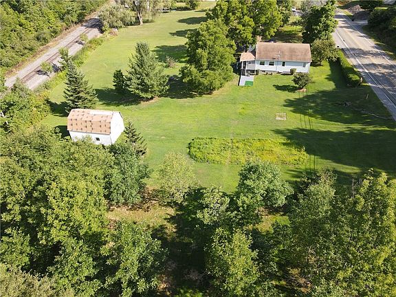 Ranch home with 4 acres. This split level home has 2 bedrooms, 1.5 baths, living room and kitchen on the first level. The lower level has a family room, possible bedroom, laundry room and a common area. The first levels bedroom has a jack and jill bathroom to one of the bedrooms. A 1/2 bath is included in the other bedroom. Forced air heat and the kitchen and bathroom has electric baseboard. There is a detached oversized two car garage. Small two story barn with electric. Front covered porch and enclosed rear porch that overlooks the property. Large yard that would be perfect for a small farmette. Located near State Game Lands. There is a railroad that runs along the rear of the property.