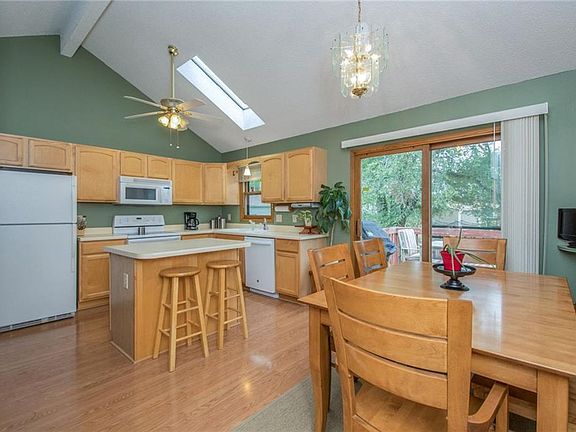 Quiet cul-de-sac near Easter Lake. Close to downtown, shopping, and restaurants. Three bedroom split level has a large eat-in kitchen that looks over the living room. Kitchen has an island, a skylight and sliding doors to the deck. All appliances are included, including the new G.E. dishwasher and newer washer and dryer. There are two full baths including the master bedroom bath. There is a linen closet and a coat closet. The lower level features a family room as well as a utility room with lots of storage. The two-car garage has extra storage and garage door openers with exterior key code pad. The playhouse and swing set in the fenced in backyard stays. Owner plans to take the master bedroom curtains.
