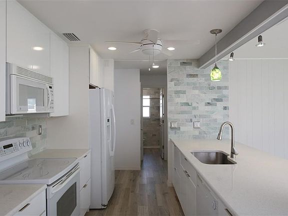 Adorable 2 bedroom 2 bath house with a large living room and huge family room in South Gate Ridge. Numerous updates include a custom kitchen remodel in 2016, custom Schuler cabinets, marble backsplash with a quartz counter top and a porcelain floors. Additionally, luxury waterproof vinyl flooring installed in 2018. PGT impact windows installed around the house and the there are hurricane shutters too. A vinyl privacy fence installed in 2010. The bamboo garden in the backyard, privacy hedge and tropical landscaping make this house a paradise! In addition, a tankless water heater was installed in 2015, a guest bathroom remodel in 2016 with a marble shower, porcelain floors and a vessel sink. This home features a living room plus a family room, and split bedroom floor plan. Outside there is plenty of room for an RV or boat along with a circular driveway. The front of the house features a gorgeous screened in deck and very private landscaping. This is a must see house! The house has been virtually staged. All furniture and art has been superimposed.