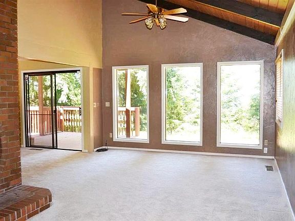 MOTIVATED SELLER! Serene setting for this contemporary style 4 BR, 2.5 bath. Living room has vaulted open beam wood ceilings & fireplace w/woodstove insert. Kitchen features tile counters & floor, lots of cabinets, island w/Jenn Air range, double wall oven & breakfast bar. Sliders to deck. MBR has cozy fireplace, walk-in closet & sliders to balcony. Bonus room could by 4th bedroom. Family room with access door. 2nd floor laundry. Private, wrap-around deck with hot tub. 24x36 shop.