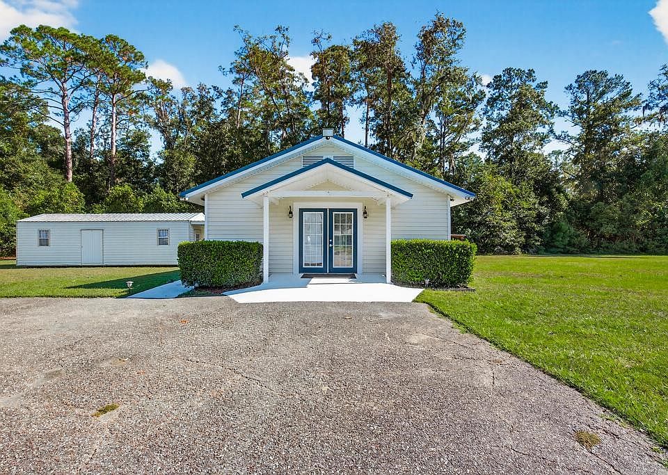 : Welcome to your next investment opportunity. This property is zoned R2 and offers multiple possibilities whether you're looking to use it again as a church, convert it to a residence, or develop it for a future business. Situated on a beautifully maintained 2-acre corner lot at CR 108 and Oxford Street, the land is cleared and dotted with large pines and magnolias, providing a serene and inviting setting. The property lies within city limits with city water and sewer available. A small building currently used as a church features a 24x23 auditorium. Inside, there are two restrooms conveniently located off the foyer and two small storage rooms on each side of the podium area. Outside, the property includes a storage building being used as a church hall with a covered walkway and a covered carport.
