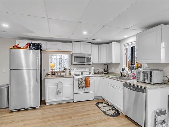 Welcome to this 4-bedroom, 3-bathroom, 1 BONUS ROOM multi-family home on over 3.5 acres in North Amherst, offering privacy among the trees. The flexible layout includes an upper unit with two decks, a main bedroom with en-suite bath, and an eat-in kitchen with granite counters, flowing into a living room with a wood stove and large windows overlooking the yard. Laundry hookups are off the kitchen or in the basement. The renovated lower unit offers patio access, 2 bedrooms, a laundry room, and a bathroom. Upgrades include a new roof shingles and $50,000 owned solar panels installed in 2017. Additional improvements are four new mini-splits upstairs, a new hot water heat pump, and a new four-bedroom septic system. Ample space for gardens and fruit trees awaits your ideas. Bring your design vision to make this property shine!