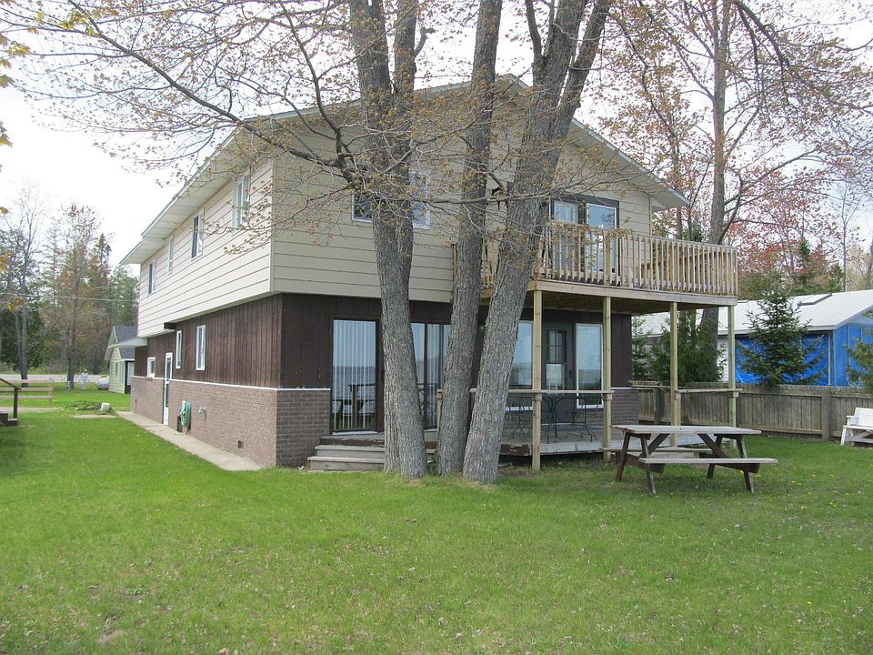 This property on all sports Black Lake has so much to offer w/4 BD, 2 BA home, 2 car attached garage plus 2 BD, 1 BA cottage. Upper level of home could be separate living quarters via back stairway off garage. Both spacious units up & down have full baths, large kitchen/dining areas, & living rooms. All units are fully furnished. Updates include newer well, deck, balcony. New windows in several rooms of guest cottage, new refrigerator & fresh paint. New refrigerator in back cottage. Could be used as rental or multiple family retreat. Great location on all sand Hongore Bay