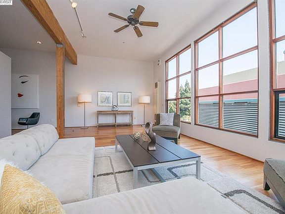 You'll love this true artist loft w/ exposed beams, south-facing wood-framed windows,& 12ft ceilings at Jack London Square's coveted Pocket Lofts. Massive live/workspace features an open L-shaped floor plan w/ a lofted bedroom and updated bathroom + kitchen nested in the living area. The kitchen has new quartz countertops+tiled backsplash, an eat-in bar area,& comes equipped w/ stainless appliances including a gas range. Bath rm is renovated with w/new vanity, subway tiled shower enclosure,& stylish floor tiles. New carpet in loft. The living area features lovely laminate flooring. Storage underneath loft. In-unit stackable W/D. Pocket Lofts is a small 10unit complex & features a secure building, elevator,& 1-parking space per unit in a gated lot. The 2nd-floor common area features a subway-style graffiti mural.Ideal for commuters w/ 880,980,580,& 24 just min away. City Center BART is .4 miles & the Ferry terminal is 3blocks away. Tons of dining, shopping,&entertainment within a 1/4 mile. 97 Walkscore!
