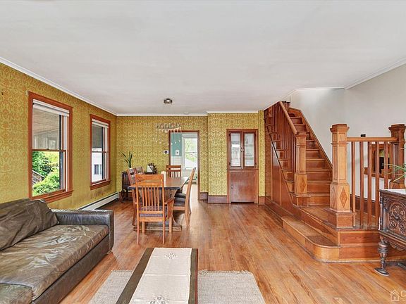 Welcome to the perfect blend of timeless charm and contemporary elegance in this traditional colonial 2 bedroom, 1 full bath home, perched in the coveted neighborhood of South Amboy. Featuring 1128 sq. ft. of beautifully appointed living space and an additional 600 sq. ft. in the basement, this home offers both grace and practicality. Upon entering, you'll be greeted by a bright and spacious open living/dining room concept, with traditional elements like beautiful hardwood floors, high ceilings, gorgeous bay window, glass cabinet, and craftsman staircase leading to the second floor. The heart of this home, the kitchen, is designed for both function and flow, featuring a convenient side entrance that opens up to a lush, secluded backyard. Here, the greenery envelops you in privacy and peace, creating an ideal backdrop for relaxing afternoons or lively gatherings. The second floor offers a delightful surprise a clear view of the ocean on sunny days, adding a serene backdrop to your personal sanctuary, 2 bright bedrooms, and the luxurious full bathroom outfitted with state-of-the-art fixtures, including a heated towel rack and modern lighting that bathes each room in warmth and comfort. Additionally, the finished part of the basement offers exciting potential for customization with all necessary hookups in place for a second bathroom awaiting your personal touch. The second room in there contains the laundry and utility facilities as well as a direct access to the backyard. Historic details are woven throughout the home, preserving its unique character, while modern updates ensure a lifestyle of ease and style. The basement presents a versatile space, perfect for storage or transformation into additional living areas. Parking is abundant with a three-car driveway and a dual carport attached to the house, positioning this home as an exceptional alternative to condo living free from the constraints of HOA fees. Enjoy the simplicity and abundance of space without compromise. The location couldn't be more convenient. Situated centrally, the home is just moments away from highways, shopping destinations, waterfront parks, beaches, and more. Commuters will especially appreciate the swift access to NYC via nearby train, bus, and ferry services. The South Amboy train station, ferry, and downtown are only a few blocks away. This property is not just a home it's a retreat that marries the allure of historic architecture with the conveniences of modern living, the added beauty of ocean views, and the practicality of ready-to-install amenities. Ideal for those who value privacy yet desire quick access to urban amenities. Experience the best of both worlds in South Amboy, where every day is a serene escape. Newer roof. Welcome home.