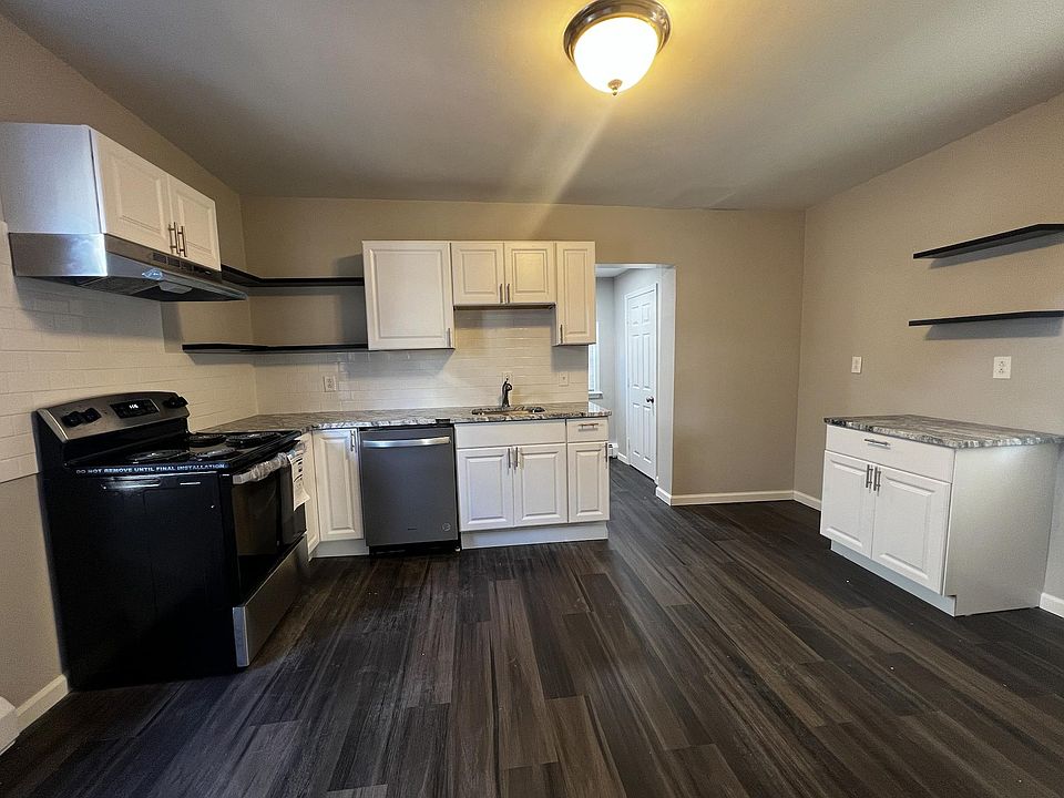 Welcome to this stunning and all-new interior home with over 1600 square feet of beautiful living space. This pet friendly home has tons of features and updates starting with a premiere location in Pottstown, PA. - The first floor features all new hardwood floors. - Brand NEW kitchen: cabinets, granite countertops, stainless steel appliances. - The level is finished out with a laundry room, half bathroom, dining room, and living room. - The kitchen door leads you to the wrap-around patio. The side patio is covered, and welcomes you into the fenced in private backyard. - The second floor features all new carpeting, a newly upgraded full-bathroom and three bedrooms. - The fourth bedroom is an oversized room on the third floor. It is perfect for a home office as well. It is separated with a private door. - The house features a brand-new boiler for dual zone, high-efficiency radiant heating. - This house features private parking in the back for up to three cars. - No smoking, steady income 3x that of rent is required with a credit score of 600 or higher. Minimum 1 year lease. - Tenant pays for Water/Sewer/Trash, Electric, oil heat, and is responsible for lawn maintenance and snow removal. - Washer/Dryer Hookup, Refrigerator hookup available. Tenant supplies those appliances. - Oven and dishwasher are provided.