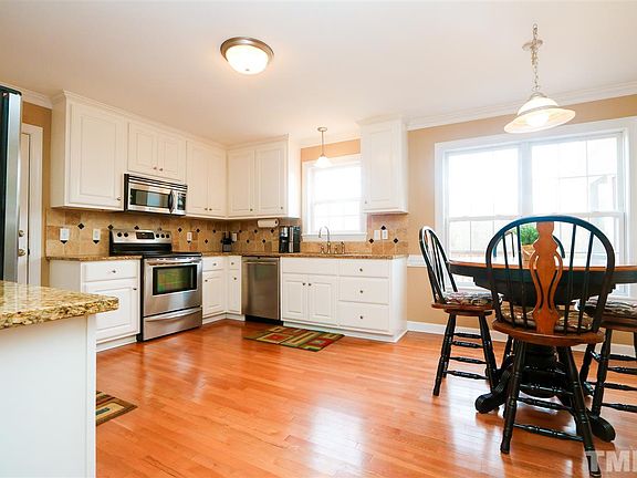 Stunning Southern POND FRONT home on 0.83 acres! Gorgeous hardwoods & crown molding throughout 1st floor. Formal dining room, kitchen w/ granite countertops, tile backsplash, SS appliances, farm sink, & breakfast nook. Spacious family room w/ stone fireplace. Master bedroom w/ vaulted ceiling, ceiling fan, & walk-in closet. Screened porch & deck are perfect for relaxing as you take in the picturesque scenery of your pond front home. Landscaped yard w/ rocking front porch & white picket fenced in backyard.