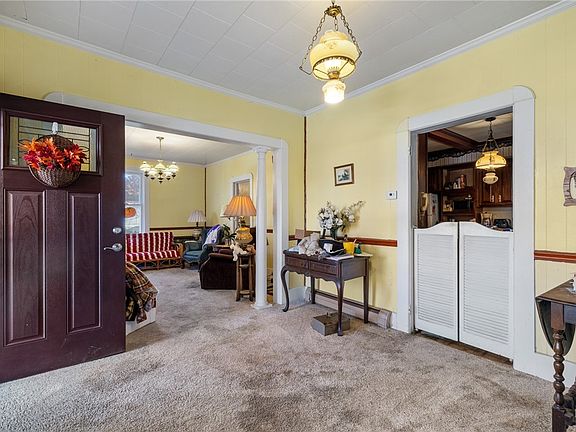 WOW... This is the one you have been waiting for!! This property features a farm pasture field with barn & coop, commercial storefront, plenty of storage and more! Home has had many updates in 2017. Roof, slant fin furnace, water heater, all appliances, upstairs total bath re do, lower half bath new appliances, flooring, walls painted, chair rail, crown molding, new porch. Property being sold in as-is condition. So much to offer and will not last!