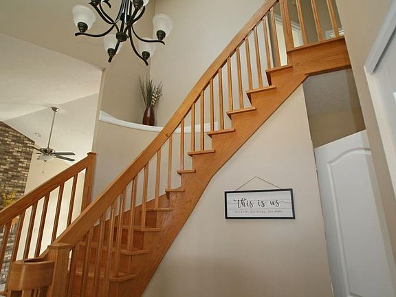 Approximately 2,100 sq. ft. of move in ready comfort and convenience. Features an open floor plan, large 1st floor master suite with soaker tub and private entrance to backyard, and a 1st floor laundry. Cathedral ceiling great room boasts tons of natural light through large windows and floor to ceiling fireplace. Kitchen features an island, tons of storage in oversized cabinets, and a separate pantry. Winding wood staircase in 2 story foyer leads to additional 3 bedrooms and full bath. Property has large fully fenced yard for lots of privacy. 12 course basement is partially finished and has tons of potential for man-cave or additional living space. Brand new tear off roof, hot water tank, flooring/carpet, windows throughout, and fresh paint both inside and out.
