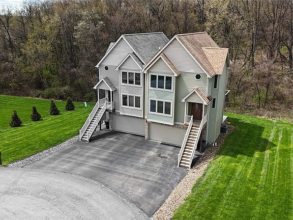 Step into this beautifully refreshed 3-story end-unit townhouse located in a quiet cul-de-sac in Chippewa Township, within the Blackhawk School District. Built in 2014, this rare end unit offers 1,624 sq ft of thoughtfully designed space, including a 2-car integral garage and a finished lower level complete with a wet bar and walkout patio—perfect for entertaining or relaxing. Backed by tranquil wooded surroundings, the home features cherry cabinetry, newly installed quartz countertops, and all-new stainless steel appliances (including a gas stove, microwave, dishwasher, and dual refrigerators). Throughout the home, you’ll find fresh paint, upgraded lighting, new vanities, recessed lighting, and premium casement windows. The main-level deck offers peaceful outdoor space, and the upper floor hosts a laundry room with new washer/dryer and a primary suite with private bath. 3D Matterport Tour available! Just minutes to Chippewa’s shopping, restaurants, schools, and major routes!