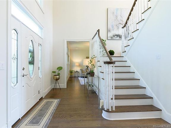 Welcome to the original Four Winds Farm in the Cranbury section of Norwalk. This masterpiece home was built by a premier builder and is exquisitely set on over an acre that peacefully borders protected conservation land and nearby Cranbury Park. You will enjoy the serenity of your private sanctuary and marvel over the tranquil sunset views. Entering this classic yet restyled modern home - you will impressed by the 2-story great room with coffered ceilings and palladium windows, fireplace and weathered oak finished hardwood floors throughout first and second floor. The elegant living room and large formal dining room are most inviting for your family and guests. The Chef's kitchen is totally up to date with stainless steel appliances and informal dining. Extra large laundry room is off the kitchen. A private study w/adjoining full bath is suitable for home office or week-end guests. There is also an additional 1/2 bath. Upstairs the romantic master suite with tray ceilings, spa-like marble bath with jetted tub and stand-up shower plus beautifully fitted walk-in closet. 3 more bedrooms including a Jack and Jill complete the upper floor. A terrace level "apartment" offers a variety of uses. Now a spectacular gym in addition to an oversized handicap compliant bathroom. Plus media room, office, rec. room. This SMART home has an abundance of upgrades listed separately in addendum in public remarks. Great commuter location bordering Westport and Wilton.