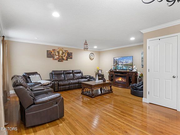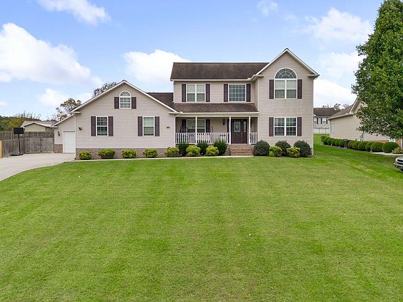 Stunning executive family residence just minutes away from I75 and the bustling hub of Jacksboro. As you step onto the covered porch, you're greeted by the elegance of this home. The main level boasts gleaming hardwood floors, an expansive open living space, and exquisite crown molding throughout. The formal living room is adorned with custom built-ins and a cozy gas fireplace. Additionally, this home offers a family room/den and a formal dining room adorned with charming wainscoting. The open floor plan seamlessly transitions into a spacious kitchen complete with a butler's pantry and ample cabinet storage. A generous walk-in pantry/laundry area provides convenience and can even accommodate a home office or study space. The main level is completed with a convenient half-bath. Upstairs, you'll find three generously sized bedrooms, two full baths, and an inviting foyer with a delightful blend of carpet and hardwood flooring. The primary bedroom is an oversized retreat, featuring a cathedral ceiling and an exquisite chandelier. The primary bathroom is equally impressive, boasting two full-size separate vanities, a luxurious jetted soaking tub, a walk-in tiled shower, and a well-appointed linen closet. This executive home includes an oversized attached two-car garage, equipped with insulation and heating, along with cooled inside crawlspace access for added storage. Enjoy the expansive covered front porch with idyllic country views. Step out from the kitchen to a generously sized covered back patio, perfect for grilling and entertaining, and an even larger covered gazebo for those special gatherings. The detached two-car garage offers additional cooking facilities for entertaining or extra vehicle storage, with the possibility of RV parking if required. To the rear, there's an attached garage-style shed for your outdoor storage needs. The oversized, fenced, and private lot is a fantastic setting for all your entertaining endeavors.