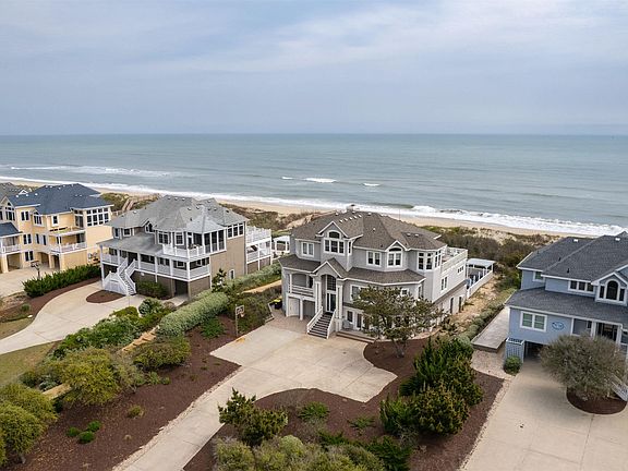 Welcome to "Sunrise Surf," a premier 9-bedroom estate located in the renowned Pine Island community of Corolla, NC on an elevated and spacious oceanfront parcel. Boasting unparalleled views of the ocean, a professionally appointed and updated interior with modern day amenities and countless upgrades, it's no surprise that this home is a strong income producer and sought after vacation destination year after year! An open concept living room with a gas fireplace and beautiful hardwood floors is spacious, open, and inviting with natural light and ocean views found from every angle. Ample seating is provided for friends and family to gather both inside and out. A large and updated kitchen offers dual stainless steel appliances, a large island for meal prep and hosting, and island, dining & breakfast seating. Make your way to the ships watch / office with ocean to sound views and comfortable coastal decor or head outside to the surrounding decks with a custom surfboard bar & sink and the best seats in the house overlooking the Atlantic. A large en suite with a king bed, privacy deck with ocean views, sitting area, and a private bath with double vanity, soaking tub, and a walk-in shower, complete this floor. Relax and unwind on the second level where you will find four king en suites, three with ocean views, in addition to two bedrooms and a full bath. No thought was spared with the homes design and amenity package incorporated with entertainment in mind. On the ground level, a media room with wraparound seating and an 85" TV, a rec room with pool table, three arcade games to include "Golden Tee", a wet bar with sink & icemaker, shuffleboard, dining seating, a full laundry room, and a half bath. Make your way outside where you are welcomed by a spacious 34x16 private heated pool, spa, pergola, outdoor shower, and poolside cabana bar for outdoor entertaining. Shared direct beach access is steps away, maintained by the community, and leads you to the wide sandy beaches of Corolla for an unforgettable Outer Banks sunrise or day spent soaking up the sun. Enjoy the convenience of an elevator to all three floors, EV car charger, and plenty of parking and privacy found on this large lot. Pine Island community amenities are easily accessible on the multi-use path through the community leading to the outdoor pool, playground, tennis courts, and beach access.