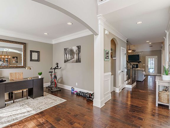 - Great Room: Molding, Ceiling-Vaulted, Floors-Hardwood, Ceiling Fan