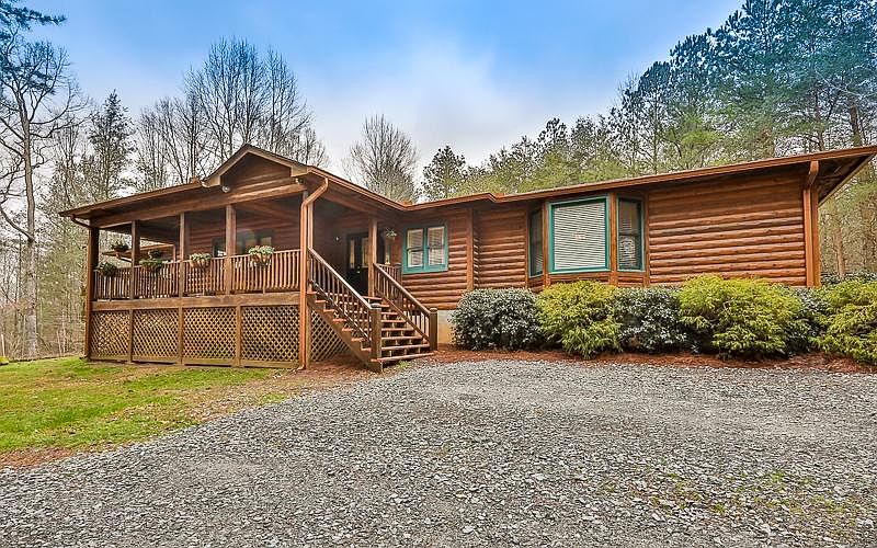 Best yard at this price point on the current market! Enjoy this 3 bedroom rustic home that is perfectly situated on nearly 5 acres with a private setting, garden, chicken coop, large 2 level storage barn (brand new), and more. Enjoy the southern style front porch and log siding, the spacious kitchen, master with en suite bathroom with shower and tub, walk in closet, laundry room with additional storage, split floor-plan, office, and HUGE sunroom to overlook the yard. This is a one level family friendly house that is not going to last long. This home has an upgraded HVAC system with uv filters.