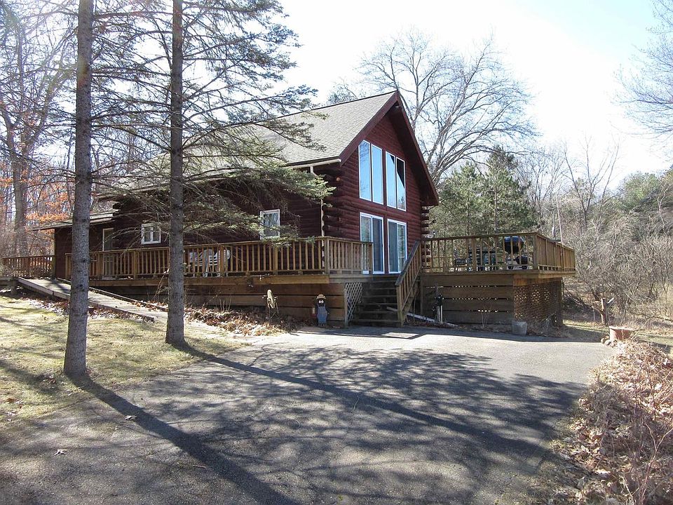 Waterfront Retreat! Escape to serene living with this charming 3-bed, 1-bath log home nestled across the street from Peppermill Lake. Included in the sale is a separate, buildable waterfront lot with 102 ft. of frontage, across the road from the home, offering endless possibilities. Embrace the tranquility on the massive deck or in the spacious interior featuring vaulted ceilings and a large lofted 3rd bedroom. Enjoy the convenience of a 2-car detached garage. Immerse yourself in nature's beauty with abundant wildlife. Just 25 mins. from Wisconsin Dells, 1 hr. from Madison, and 3 hrs. from Chicago, this is your chance to own the perfect waterfront retreat. Mornings on the lake, afternoons in the Dells, and evenings around the campfire...not a bad life!