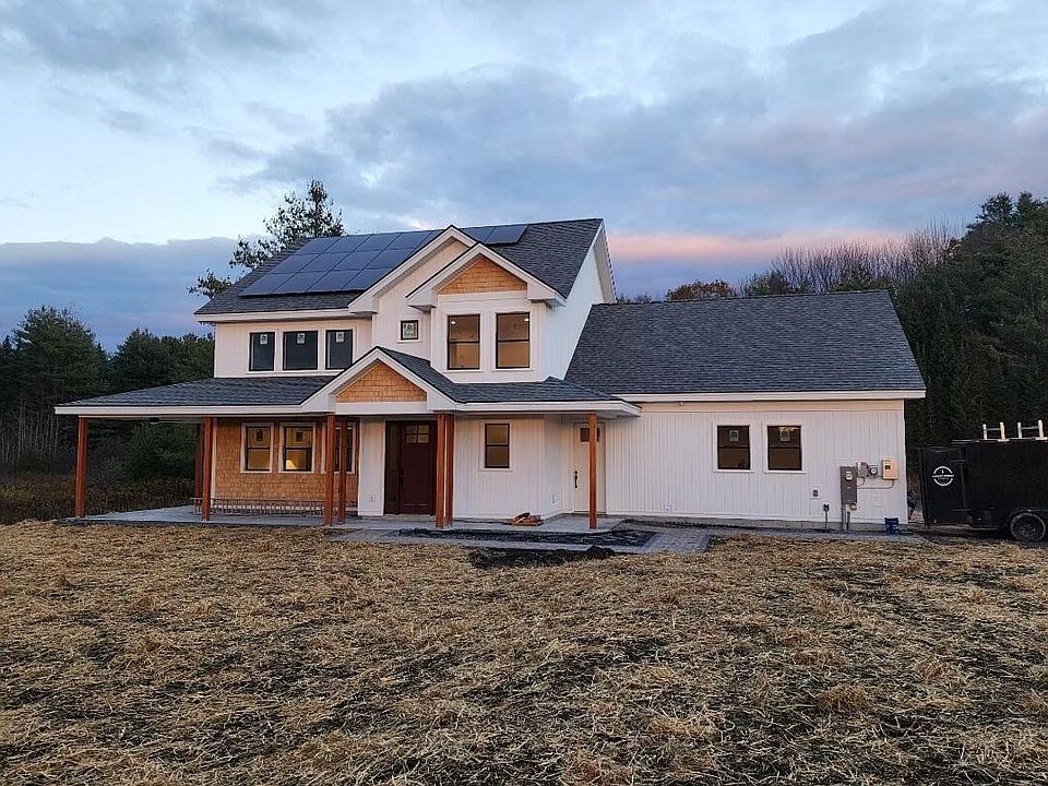 Welcome to this majestic, custom-built 3-4BR home on 2.33 private acres in Gorham Maine. This impressive home is guaranteed to take your breath away. No detail has been overlooked from one of Southern Maine's most creative and talented builders. It all begins with a bright entryway into the first floor with 9' ceilings, concrete polished floors (with radiant heat under your feet), and continues on to the open chef's kitchen. The massive island, custom concrete counters and cabinets, and six-burner gas stove are a dream to work in. Sun floods natural light into the kitchen through over-sized Mathews windows. Open and adjacent to the kitchen is your front to back living and dining space, with floor to ceiling glass doors that look out onto your private, wooded back yard. Heat pumps cool this space all summer long! At the top of the stairs you will find a built in bookshelf-storage landing, a primary bedroom with over-sized bathroom. The tiled shower and huge walk-in closet in the bathroom are a convenient feature, with unique, hand-crafted storage and cast-iron closet rails. The other two guest bedrooms are over-sized, with heat pumps in every room for cooling and heating, and baseboard heat as well. Conveniently located just past the 2nd guest full bath is a giant laundry/storage room, and just beyond that is an over-sized family room (or 4th bedroom/office). Let's not forget the 29X31' two car garage with heated and Epoxy floors. The entire exterior has custom stone patios and walkways, with a fire pit ready to enjoy. No expense has been spared in this ''one of a kind'' home. Let's not forget the solar powered system already installed on the roof, and the generator hook-up too. Open House Sunday Jan 14th from 10AM-12PM