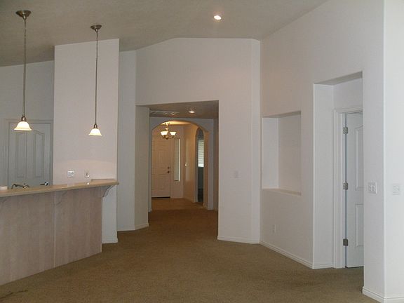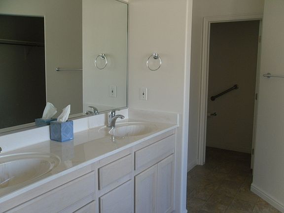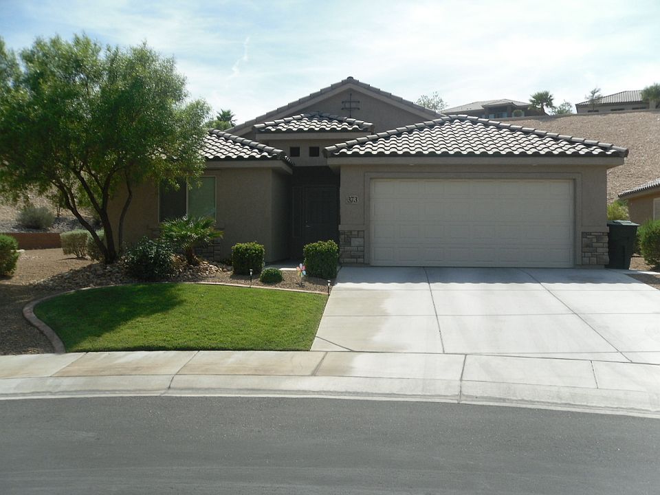 This splendid property features a stylish single-story layout with 3 bedrooms and 2 bathrooms, spread across a spacious, open floor plan and freshly painted! Step inside to find a bright and airy living area. The kitchen boasts ample counter space, lots of cabinet space, and opens up to the main living area, perfect for entertaining. The primary suite includes an ensuite bathroom with dual vanities and a soaking tub for relaxing. Other highlights include a large two-car garage with built-in shelves, a laundry area, and a low-maintenance backyard with desert landscaping to enjoy Mesquite's sunny days. Located just minutes from local amenities and recreational facilities, this home is an ideal blend of lifestyle and location.