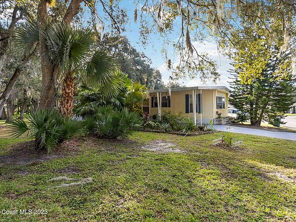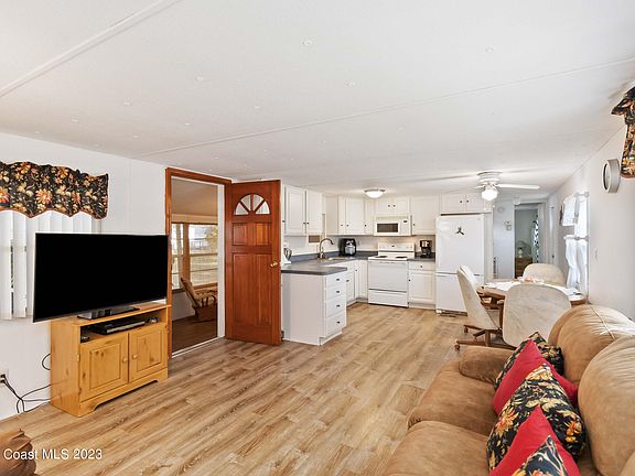 Live the Florida Lifestyle in this 55 plus Holiday Park community in NE Palm Bay where you OWN the land. Well maintained 2 bedroom, 2 bath home with living area that opens to fully equipped eat in kitchen that has plenty of counter and cabinet space. Enjoy the spacious & bright Florida Room with new beautiful ceramic tile flooring that under air. Nice size Master Suite with plenty of closet space. Master & guest baths has been updated. Laundry area off Florida Room w/ utility sink. Exterior features paver patio area and shed. Newly installed Leaf Filter in January 2023 with Lifetime Transferable Warranty. Enjoy all the amenities the community offers including 2 inground pools, clubhouse with library, billiards, darts, media room, Rec Hall, shuffleboard, storage compound and much more!