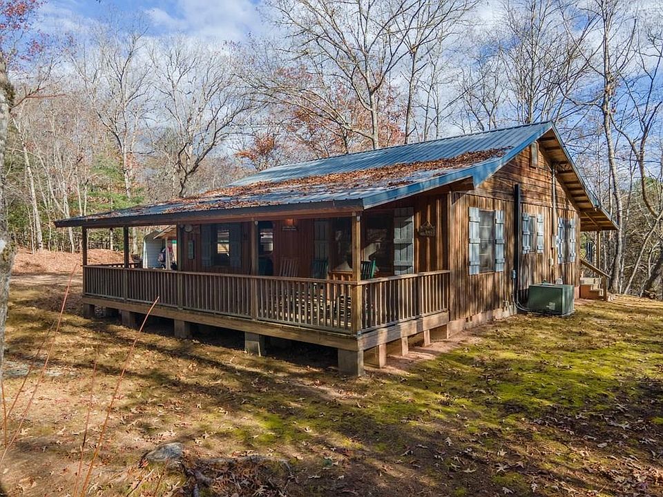 Welcome to 373 Judds Mountain Trail, a charming 2/2 rustic cabin on 3+ acres with a private setting & expansive southern view Conveniently located between Franklin & Bryson City, NC. This home offers easy access from Hwy 28. The board & batten cypress exterior, metal roof, & two inviting decks (facing east & west) provide a picturesque setting for sunrises & sunsets. Step inside to experience the cozy ambiance, featuring gorgeous "pecky cypress" interior walls in the main living area & pine tongue & groove ceilings. Hardwood floors in the living area & BRs, while the 2 bathrooms boast tile flooring. The spacious kitchen connects to the living area, creating an inviting gathering space. Outside, a detached carport w/an attached storage/workshop, doubling as the laundry area, adds practicality. An additional metal-enclosed carport provides space for extra vehicles or toys. The property's proximity to the Little Tennessee & the Nantahala River areas, & the GSMNP enhances its appeal as a potential short-term rental. Explore the tranquil mountain living at this delightful cabin. Schedule a visit today & discover the unique charm & possibilities it has to offer.