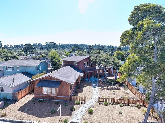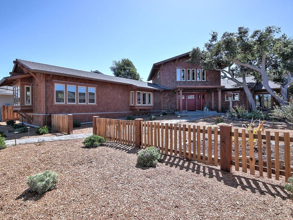 Rare offering of new construction-spectacular custom-designed Craftsman home. This residence offers over 3,100 sf feet of elegant living on a 10,000+ sf street to alley lot in the heart of Pacific Grove. A formal living room with a ceiling that soars 2 stories high features a dramatic stone fireplace (gas log) & a Juliet balcony from the 2nd floor landing, custom shelving and elegant lighting sconces. The formal dining room is spacious for a table of 12 along with space for breakfront. The family room features a gas log fireplace with stone surround and french doors to the back & front gardens. The kitchen offers the chef all the best in kitchen amenities and is open to the family room to offer comfortable entertaining. The ground floor master has spacious bay windows & walk-in closet. The 2nd floor is designed as an executive office or library though it can be a 4th bedroom. Located just a few blocks from historic downtown Pacific Grove with peeks of the Bay. One-of-a-kind home.