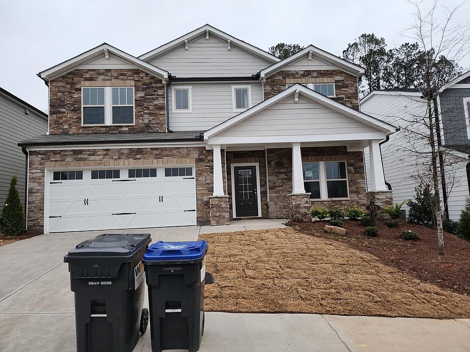 Brand new home available for rent immediately in a gated community. Charming 5 bed, 4 full bath, 3,020 sq ft home in Canton! Open kitchen concept, two flex spaces on the main level, plus a large loft upstairs, allow you to customize the layout to fit your needs and a spacious living room. Master suite with attached bathroom. Patio in the backyard facing small lake / walking trail, Pets accepted on a case-by-case basis. Additional admin fees apply. Schedule your showing today! The sub-division features a swimming pool. This property has access to Publix and Kroger and many fast-food restaurants within in a mile.