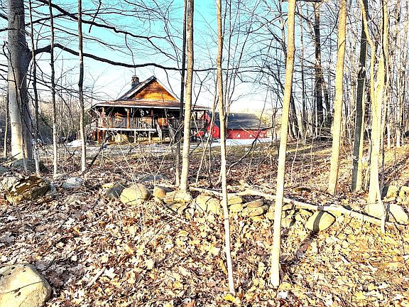 Cute Log home situated on 30 acres on a quiet paved country road with a 36 x 48 barn. The home offer 2 bedrooms with a loft, cathedral ceiling over the living area, a wraparound covered porch, a full walkout basement w/potential for a garage, shop area or more living space. The 30 acres has some open space, pasture, and woods with some trails. Has lots of potential and could be your dream come true!