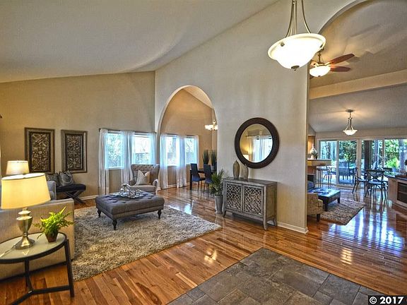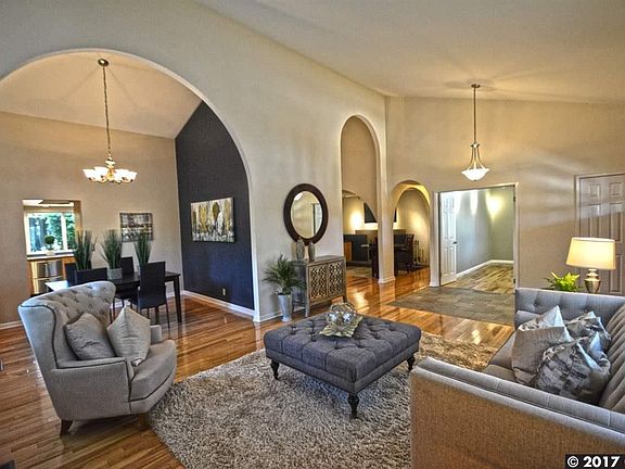 This single story contemporary home located in the highly desirable Dana Hills subdivision features 3 beds, 2 baths, 2135 sf of living space on a 10,450 sf lot. This home features an inviting front courtyard, custom designed cabinets, beautiful beechwood floors and many upgrades throughout. The large living room includes vaulted ceilings, picturesque windows, abundant natural light and opens to both the dining room and the game room with a wood burning fireplace, built-in cabinets, wet bar & wine cooler. The updated kitchen features abundant cabinets, a custom-built pull-out pantry, Corian counter tops, a breakfast bar, stainless steel appliances, tile flooring & backsplash, a tray ceiling with a ceiling fan, recessed lighting & a breakfast nook with patio sliders that open to the backyard. The generous master bedroom suite offers abundant windows and opens to the remodeled master bathroom. The stunning master bathroom includes a dual vanity with Corian countertops, lots of drawers, recessed lighting, a walk-in closet, a tile and glass surround shower with three shower heads including a rainfall shower head, a garden tub, and a patio slider that opens to the backyard. The guest bedrooms offer lovely views of evergreen trees and plentiful closet space. The office with a view to the courtyard and beechwood flooring can be utilized as a 4th bedroom. The updated hall bathroom features a spacious vanity with Corian countertops, tile flooring & shower over tub with a glass enclosure. The laundry room is inside, has cabinets above the washer & dryer, and an extra large closet that opens to the hallway. Perfect for entertainment, the private backyard is comprised of a large covered wood deck, drought tolerant landscaping & side yard access to the three-car garage. Close to Mt. Diablo hiking trails, downtown, restaurants & parks and ties into award winning schools. HOA fees are $185 quarterly & include a community pool, clubhouse, playground, greenbelts & trails. This home is a must see!