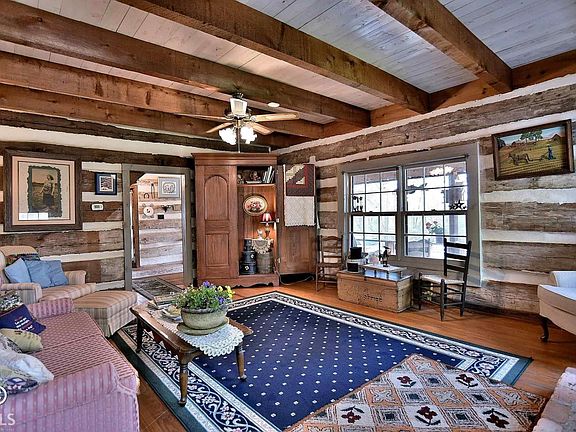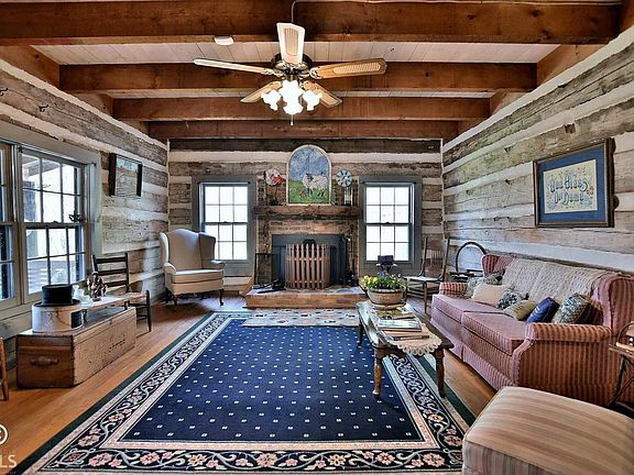 Originally located in Troup County, the 1854 log cabin was dismantled, moved to to a private ,wooded property with mature hardwoods and crossed by a picturesque stream in Hamilton, GA. A meticulous rebuilding process in 1984 included the integration of a modern h/a system down stairs and new wiring and plumbing throughout. Originally the cabin had a "dogtrot" floor plan, one room on each side of an open hall. The dogtrot was enclosed with double doors and enough of the original wood was left to floor it. An upper story was also built. They added board and batten bath, laundry area, dining and kitchen. The massive old logs were left exposed when possible. Great schools and low crime rate add to its appeal. Come live the good life in Harris County!!